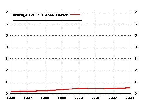 Most cited documents in this series: Latest citations received in: | 2003 | 2002 | 2001 | 2000 Latest citations received in: 2003 Latest citations received in: 2002 Latest citations received in: 2001 Latest citations received in: 2000 Warning!! This is still an experimental service. The results of this service should be interpreted with care, especially in research assessment exercises. The processing of documents is automatic. There still are errors and omissions in the identification of references. We are working to improve the software to increase the accuracy of the results. Source data used to compute the impact factor of RePEc series.