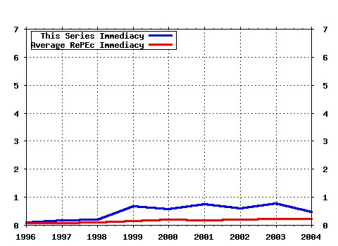 (January 2006, with Arijit Mukherji and Aleh Tsyvinski) (2004). UCLA Department of Economics / UCLA Economics Online Papers (9) RePEc:cpr:ceprdp:4245 Easy Targets and the Timing of Conflict (2004). C.E.P.R. Discussion Papers / CEPR Discussion Papers (10) RePEc:cty:dpaper:0406 Non-linear adjustments in fiscal policy (2004). Department of Economics, City University, London / City University Economics Discussion Papers (11) RePEc:ecb:ecbwps:20040314 Exchange rate risks and asset prices in a small open economy (2004). European Central Bank / Working Paper Series (12) RePEc:ecb:ecbwps:20040390 Financial marketsâ behavior around episodes of large changes in the fiscal stance (2004). European Central Bank / Working Paper Series (13) RePEc:ehu:dfaeii:200405 The NKM model: Does it show the comovement between output and inflation in the US?. (2004). University of the Basque Country - Department of Foundations of Economic Analysis II / DFAEII Working Papers (14) RePEc:esx:essedp:577 Macroeconomic Effects of Oligopolistic Competition with Wage Bargaining (2004). University of Essex, Department of Economics / Economics Discussion Papers (15) RePEc:fip:fedpwp:04-3 How did the Miami labor market absorb the Mariel immigrants? (2004). Federal Reserve Bank of Philadelphia / Working Papers (16) RePEc:iim:iimawp:2004-06-06 Labour Market Deepening in the Indian Information Technology Industry: An Exploratory Analysis (2004). Indian Institute of Management Ahmedabad, Research and Publication Department / IIMA Working Papers (17) RePEc:imf:imfwpa:04/137 Debt Maturity and the International Financial Architecture (2004). International Monetary Fund / IMF Working Papers (18) RePEc:iza:izadps:dp1315 The Dynamic Impact of Immigration on Natives Labor Market Outcomes: Evidence from Israel (2004). Institute for the Study of Labor (IZA) / IZA Discussion Papers (19) RePEc:lmu:muenec:313 Political Economy Reasons for Government Inertia: The Role of Interest Groups in the Case of Access to Medicines (2004). University of Munich, Department of Economics / Discussion Papers in Economics (20) RePEc:man:cgbcrp:44 Nonlinearity and Structural Change in Interest Rate Reaction Functions for the US, UK and Germany (2004). The School of Economic Studies, The Univeristy of Manchester / Centre for Growth and Business Cycle Research Discussion Paper Series (21) RePEc:man:cgbcrp:46 Modelling UK Inflation: Persistence, Seasonality and Monetary Policy (2004). The School of Economic Studies, The Univeristy of Manchester / Centre for Growth and Business Cycle Research Discussion Paper Series (22) RePEc:nbr:nberwo:10379 A New Micro Model of Exchange Rate Dynamics (2004). National Bureau of Economic Research, Inc / NBER Working Papers (23) RePEc:nbr:nberwo:10730 Welfare vs. Market Access: The Implications of Tariff Structure for Tariff Reform (2004). National Bureau of Economic Research, Inc / NBER Working Papers (24) RePEc:nbr:nberwo:11017 Information Dynamics and Equilibrium Multiplicity in Global Games of Regime Change (2004). National Bureau of Economic Research, Inc / NBER Working Papers (25) RePEc:nst:samfok:4204 Welfare Competition in Norway (2004). Department of Economics, Norwegian University of Science and Technology / Working Paper Series (26) RePEc:nwu:cmsems:1396 Social Learning in One-Arm Bandit Problems (2004). Northwestern University,