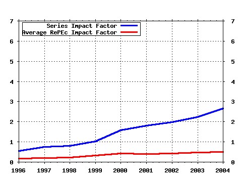 Distortions (2001). Review of Economic Dynamics (27) RePEc:rut:rutres:200109 Chaotic Interest Rate Rules (2001). Rutgers University, Department of Economics / Departmental Working Papers (28) RePEc:wbk:wbrwps:2707 Financial Intermediary Development and Growth Volatility: Do Intermediaries Dampen or Magnify Shocks? (2001). The World Bank / Policy Research Working Paper Series Warning!! This is still an experimental service. The results of this service should be interpreted with care, especially in research assessment exercises. The processing of documents is automatic. There still are errors and omissions in the identification of references. We are working to improve the software to increase the accuracy of the results. Source data used to compute the impact factor of RePEc series.