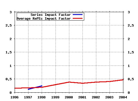 Most cited documents in this series: (1) RePEc:fth:waterl:9314 The Dynamic Demand for Money in Germany, Japan and the United Kingdom. (1993). Cited: 9 times. (2) RePEc:fth:waterl:9414 Opportunity Sets and Individual Well-Being. (1994). Cited: 6 times. (3) RePEc:fth:waterl:9601 On Second-Best Compensation. (1996). Cited: 4 times. (4) RePEc:fth:waterl:9501 Choices, Consequences, and Rationality. (1995). Cited: 3 times. (5) RePEc:fth:waterl:9308 Preference Extention Rules for Ranking Sets of Alternatives with a Fixed Cardinalty. (1993). Cited: 2 times. (6) RePEc:fth:waterl:9502 Unemployment Insurance, Labor Market Dynamics, and Social Welfare. (1995). Cited: 2 times. (7) RePEc:fth:waterl:9604 U.S. Labour Market Policy and the Canada-U.S. Unemployment Rate Gap. (1996). Cited: 2 times. (8) RePEc:fth:waterl:9505 History and Measurement in the Service Sector: A Review. (1995). Cited: 1 times. (9) RePEc:fth:waterl:9315 Aggregate Consumption Behavior and Liquidity Constraints: The Canadian Evidence. (1993). Cited: 1 times. Latest citations received in: | 2004 | 2003 | 2002 | 2001 Latest citations received in: 2004 Latest citations received in: 2003 Latest citations received in: 2002 Latest citations received in: 2001 Warning!! This is still an experimental service. The results of this service should be interpreted with care, especially in research assessment exercises. The processing of documents is automatic. There still are errors and omissions in the identification of references. We are working to improve the software to increase the accuracy of the results. Source data used to compute the impact factor of RePEc series.