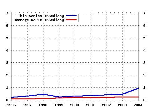 Employment, and Wages (2002). Review of Economic Dynamics (22) RePEc:wiw:wiwrsa:ersa02p232 Social returns to commuting in the Baltic states (2002). European Regional Science Association / ERSA conference papers Latest citations received in: 2001 (1) RePEc:ces:ceswps:_592 Education and Efficient Redistribution (2001). CESifo GmbH / CESifo Working Paper Series (2) RePEc:cir:cirwor:2001s-07 Emission Taxes and Standards for an Asymmetric Oligopoly (2001). CIRANO / CIRANO Working Papers (3) RePEc:cir:cirwor:2001s-40 Logiques et tests dhypothèses : réflexions sur les problèmes mal posés en économétrie (2001). CIRANO / CIRANO Working Papers (4) RePEc:fgv:epgewp:437 Duplication of R D and Industry Concentration (2001). Graduate School of Economics, Getulio Vargas Foundation (Brazil) / Economics Working Papers (Ensaios Economicos da EPGE) (5) RePEc:fip:fedhwp:wp-01-19 The effects of health insurance and self-insurance on retirement behavior (2001). Federal Reserve Bank of Chicago / Working Paper Series (6) RePEc:fip:fedlwp:2001-014 Common stochastic trends, common cycles, and asymmetry in economic fluctuations (2001). Federal Reserve Bank of St. Louis / Working Papers (7) RePEc:fip:fednsr:135 The overnight interbank market: evidence from the G-7 and the Euro zone (2001). Federal Reserve Bank of New York / Staff Reports (8) RePEc:fip:fedreq:y:2001:i:fall:p:53-70 International pricing in new open-economy models (2001). Economic Quarterly (9) RePEc:nbr:nberte:0273 A New Use of Importance Sampling to Reduce Computational Burden in Simulation Estimation (2001). National Bureau of Economic Research, Inc / NBER Technical Working Papers (10) RePEc:nbr:nberwo:8072 Fiscal Requirements for Price Stability (2001). National Bureau of Economic Research, Inc / NBER Working Papers (11) RePEc:nbr:nberwo:8279 Keiretsu and Relationship-Specific Investment: Implications for Market-Opening Trade Policy (2001). National Bureau of Economic Research, Inc / NBER Working Papers (12) RePEc:nbr:nberwo:8681 The Advantage of Transparent Instruments of Monetary Policy (2001). National Bureau of Economic Research, Inc / NBER Working Papers (13) RePEc:nya:albaec:03-01 Does COllege Attendance Increase Wage Volatility (2001). University at Albany, SUNY, Department of Economics / Discussion Papers (14) RePEc:wop:snyaec:01-01 Trade Liberalization and Asset Markets (2001). State University of New York at Albany, Department of Economics / Discussion Papers (15) RePEc:wop:snyaec:03-01 Estimating Wage Volatility for College versus High School Careers (2001). State University of New York at Albany, Department of Economics / Discussion Papers Warning!! This is still an experimental service. The results of this service should be interpreted with care, especially in research assessment exercises. The processing of documents is automatic. There still are errors and omissions in the identification of references. We are working to improve the software to increase the accuracy of the results. Source data used to compute the impact factor of RePEc series.