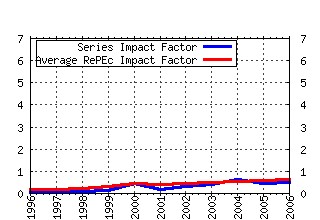 IF: Impact Factor: C2Y / D2Y AIF: Average Impact Factor for series in RePEc in year y DOC: Number of documents published in year y CIT: Number of citations to the series in year y D2Y: Number of articles published in y-1 plus y-2 C2Y: Cites in y to articles published in y-1 plus y-2 SC(%): Percentage of selft citations in y to articles published in y-1 plus y-2 CiY: Cites in year y to documents published in year y IdI: Immediacy Index: CiY / Documents.   AII: Average Immediacy Index for series in RePEc in year y