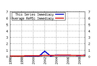 IF: Impact Factor: C2Y / D2Y AIF: Average Impact Factor for series in RePEc in year y DOC: Number of documents published in year y CIT: Number of citations to the series in year y D2Y: Number of articles published in y-1 plus y-2 C2Y: Cites in y to articles published in y-1 plus y-2 SC(%): Percentage of selft citations in y to articles published in y-1 plus y-2 CiY: Cites in year y to documents published in year y IdI: Immediacy Index: CiY / Documents.   AII: Average Immediacy Index for series in RePEc in year y