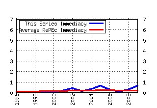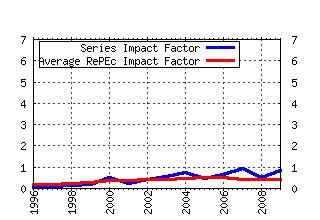 IF: Impact Factor: C2Y / D2Y AIF: Average Impact Factor for series in RePEc in year y DOC: Number of documents published in year y CIT: Number of citations to the series in year y D2Y: Number of articles published in y-1 plus y-2 C2Y: Cites in y to articles published in y-1 plus y-2 SC(%): Percentage of selft citations in y to articles published in y-1 plus y-2 CiY: Cites in year y to documents published in year y IdI: Immediacy Index: CiY / Documents.   AII: Average Immediacy Index for series in RePEc in year y